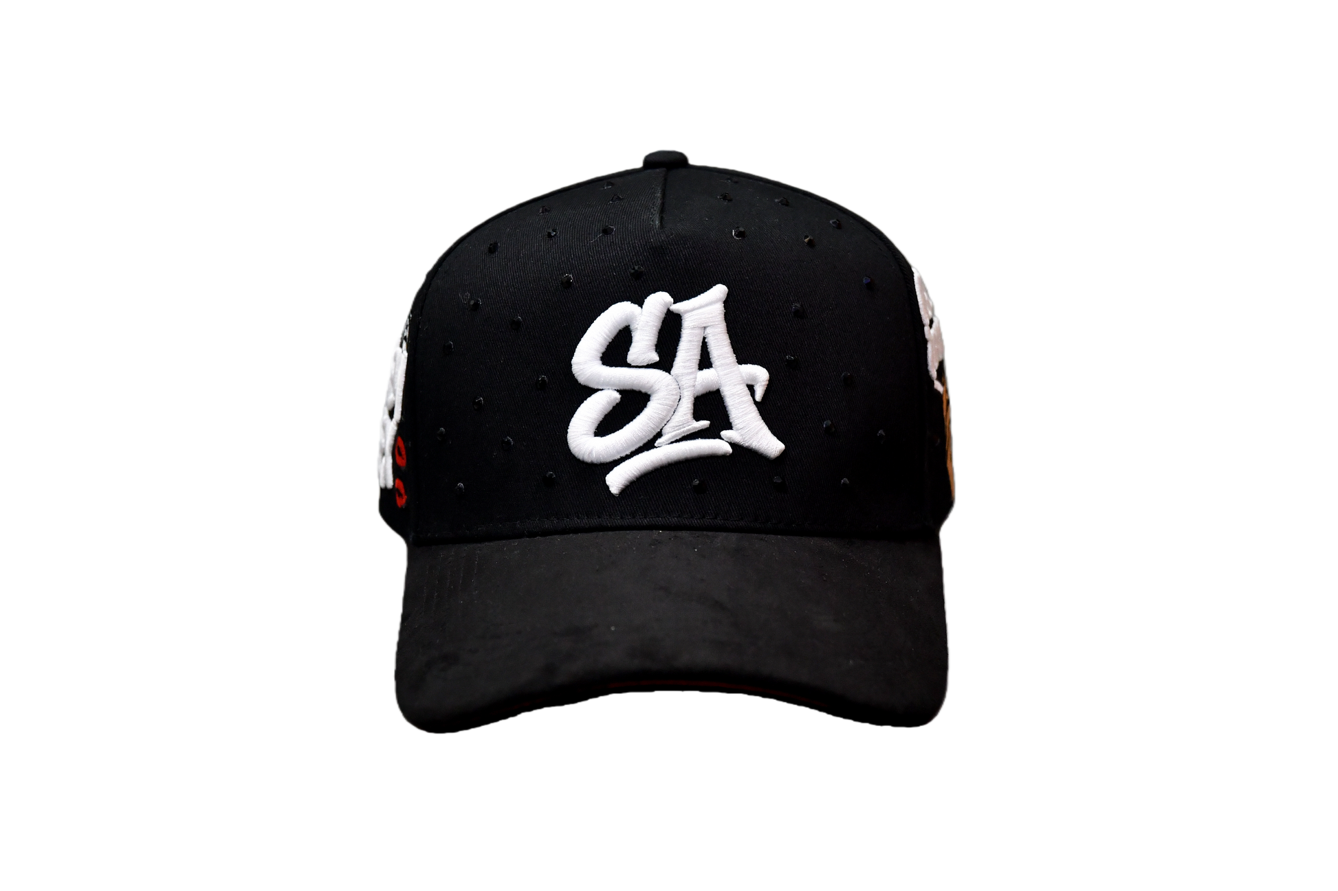 - Premium black suede brim, with red suede underneath.