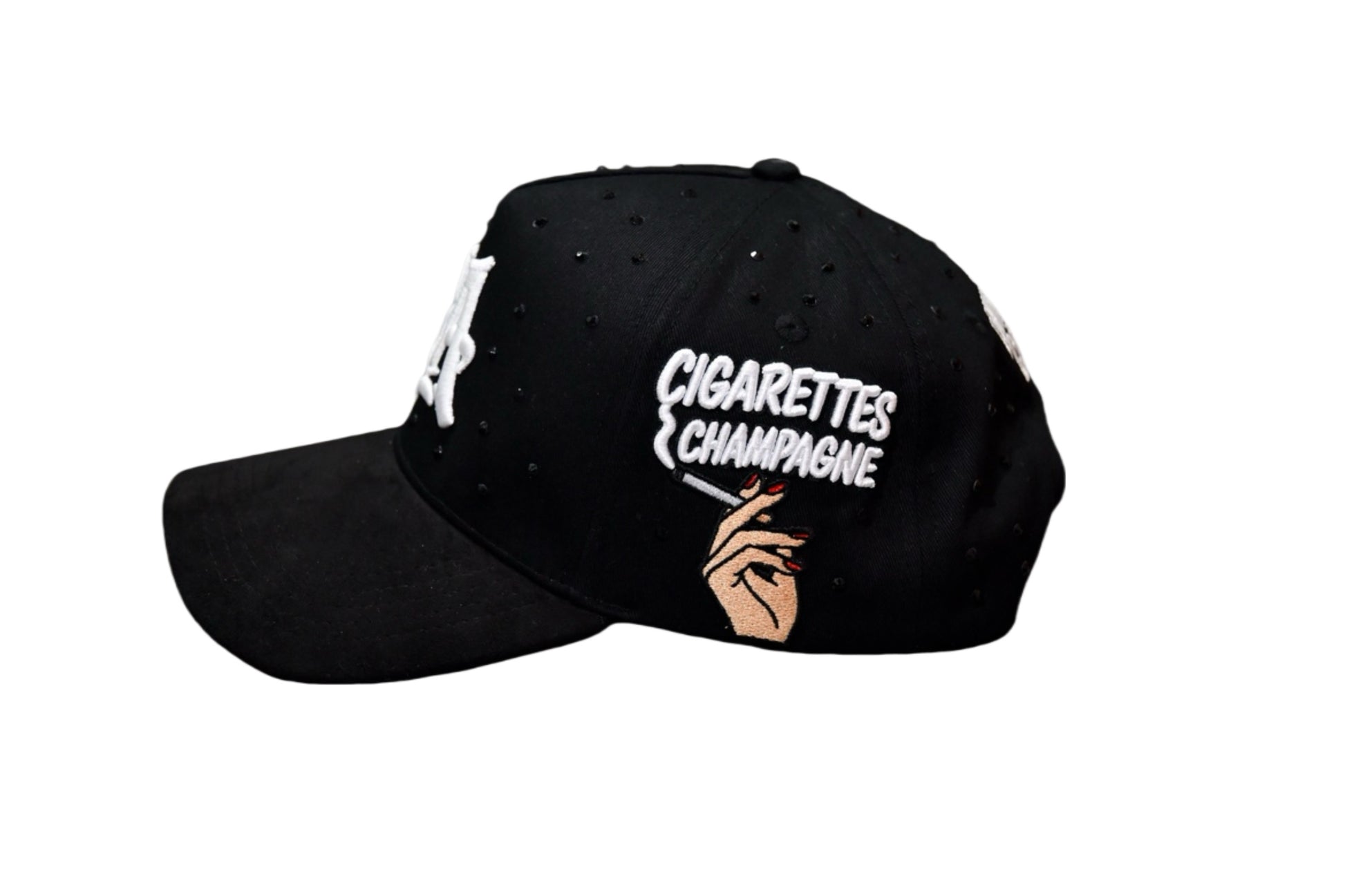 - Black rhinestones precisionaly placed all around.